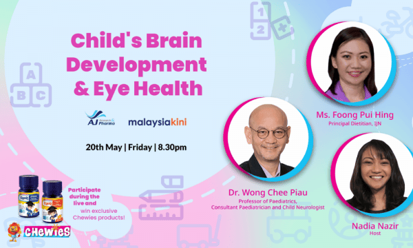 Join us on 20th May, Friday at 8.30pm as we speak to Dr. Wong, Professor of Paediatrics, Consultant Paediatrician and Child Neurologist together with Ms. Foong Pui Hing, Principal Dietitian at IJN to get their insights on child’s brain development and eye health.